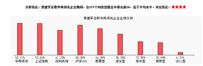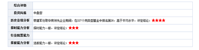 2)基金经理分析:该基金拟任基金经理为蔡建军先生。蔡建军选股择时能力突出,任职期内业绩优异,蔡建军任职华商领先企业期间,在227个同类型基金中排名第26,高于平均水平。