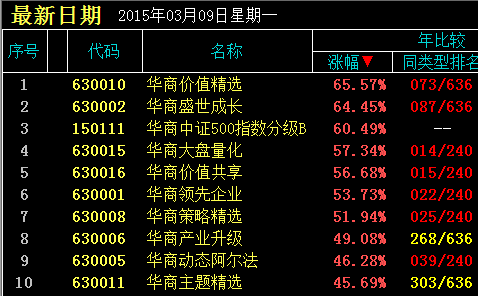 1)华商基金管理有限公司自2005年成立以来,发展较快,已成长为基金公司中的佼佼者。近年来,凭借出色的业绩,公司及旗下产品多次获得业内最高荣誉——“金牛奖”。2014年,华商基金股票平均主动管理收益率为39.25%,在银河证券2015年1月1日发布的70家基金公司《2014年基金管理公司国内股票投资主动管理能力》中排名第10位,为前十名中参评基金数量最多的公司,彰显出公司强大的股票投资管理能力。下图为华商基金近一年的偏股型产品的表现情况。